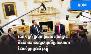មេដឹកនាំអាមេរិក លោក ដូណាល់ ត្រាំ បានអង្គុយទល់មុខជាមួយអគ្គលេខាធិការអង្គការណាតូ លោក Mark Rutte នៅក្នុងការិយាល័យរាងពងក្រពើកាលពីយប់ថ្ងៃចន្ទម្សិលមិញ បានប្រកាសផ្តល់អាវុធទំនើបដល់ អ៊ុយក្រែន រួមទាំងបានគំរាមដាក់ទណ្ឌកម្មលើប្រទេសទិញប្រេងពីរុស្ស៊ី ដើម្បីជម្រុញអោយកិច្ចព្រមព្រៀងសន្តិភាពកើតឡើង ដែលជាការខិតខំរបស់សហរដ្ឋអាមេរិក។